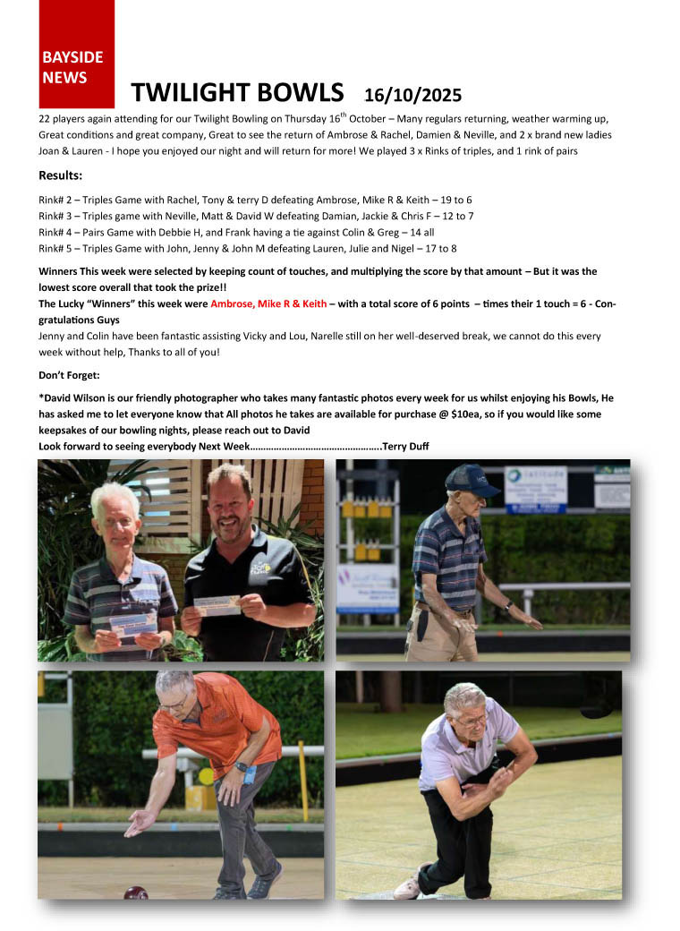 Although no official records are available, correspondence suggests that the club was first formed in 1941. Over a 3 year period, land was prepared, 2 greens established, a machinery shed and the first stage of the club house were built. In 1980 land was leased from the Redland Shire Council, and a third green was added. Extensions to the clubhouse in its present form was officially opened in 1986. The club has a Men's and Women's branch who work well together to make the club a happy and friendly home away from home. The club exists due to a substantial volunteer workforce who are there to support our bar and greenkeeping staff. Our members have their hearts in the club and that is why we go from strength to strength.